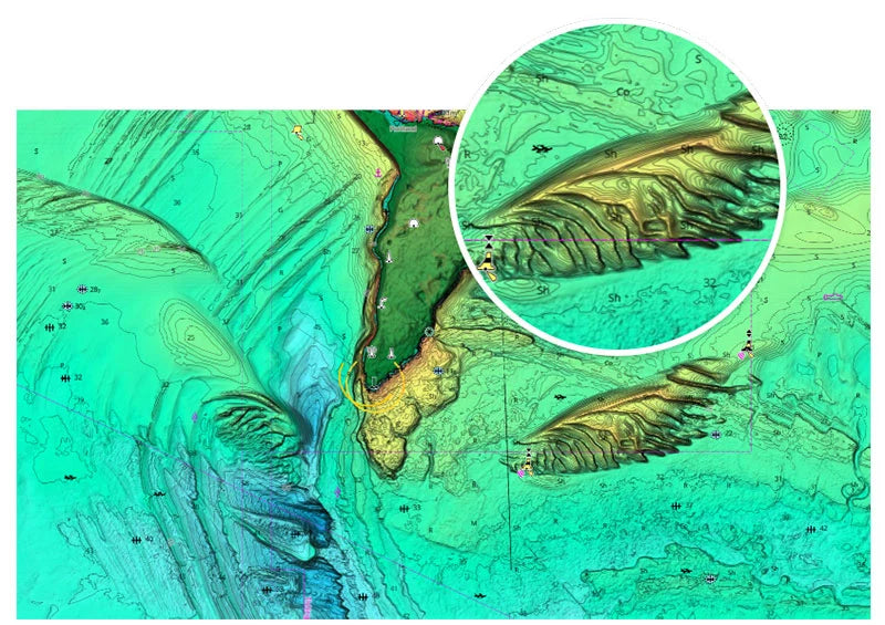 Shaded Relief – bring the world around you to life with 3D rendered land and underwater elevation, including areas of ultra-high resolution – a game-changer for anglers and divers