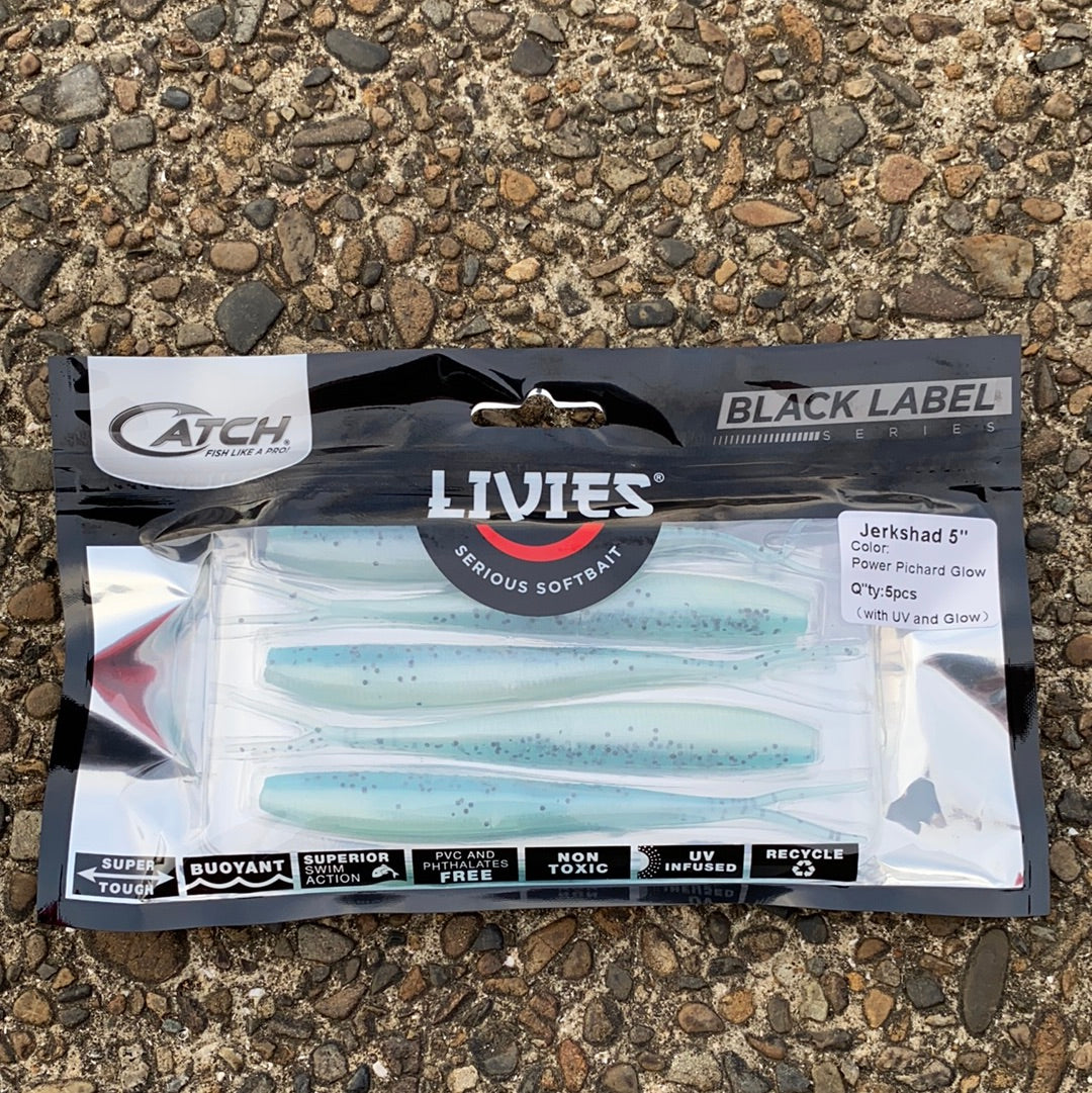 Catch Black Label Livies Softbait 5 or 7" Jerkshad - Power Pilchard Glow