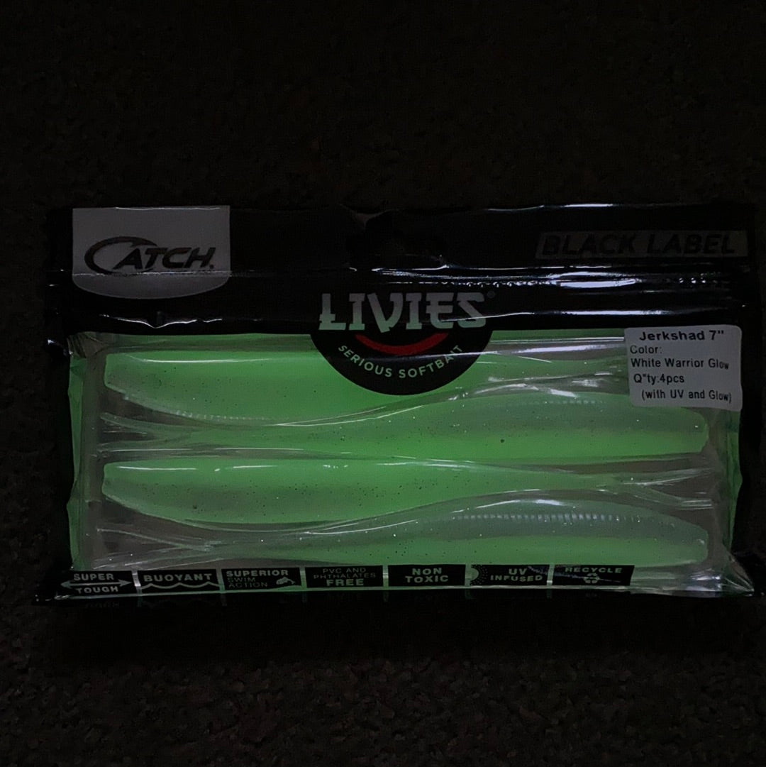 Catch Black Label Livies Softbait 5 or 7" Jerkshad - White Warrior Glow