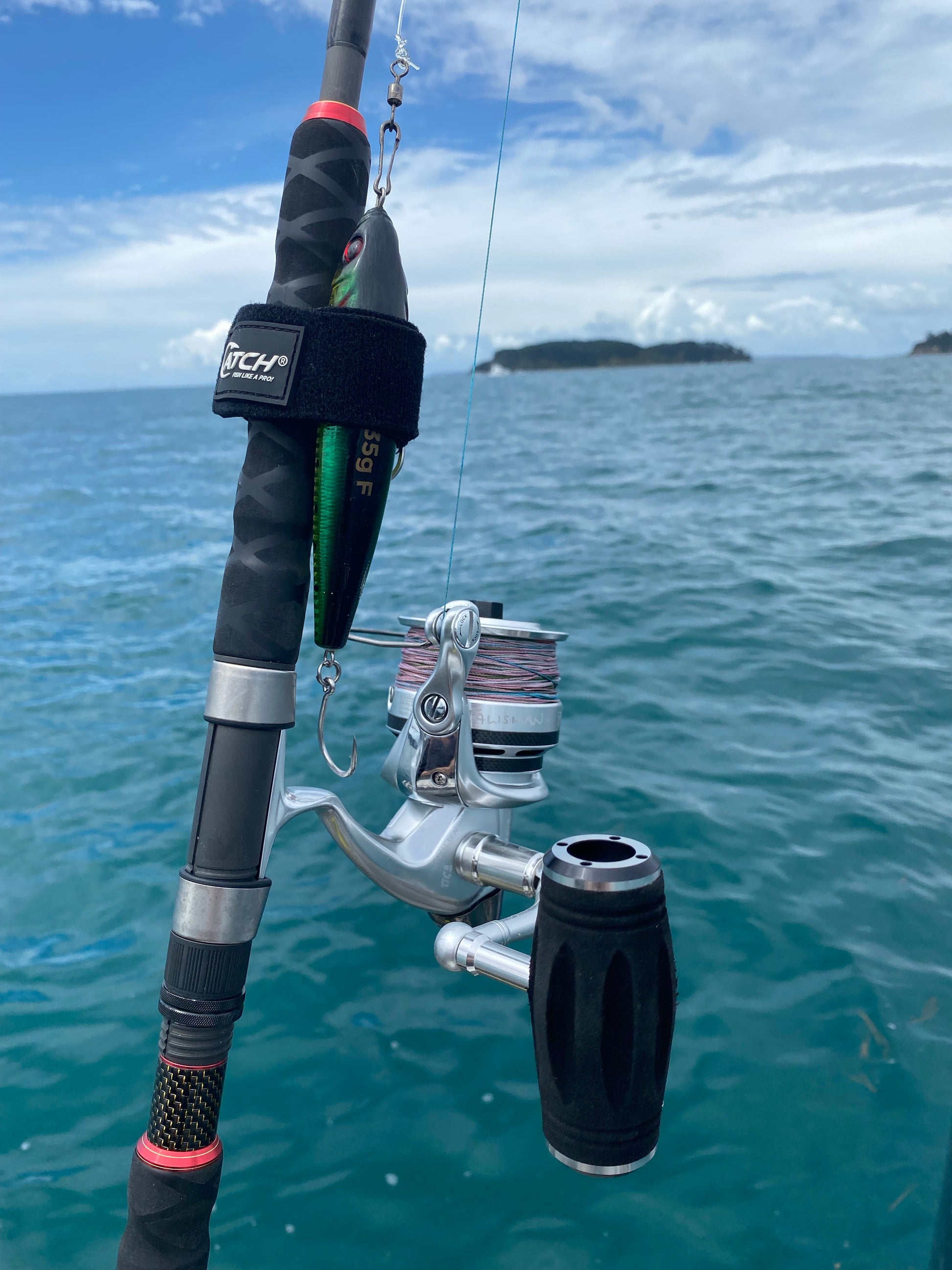 The Catch Rod and Lure strap is a stretchy neoprene strap with multiple uses. It can be used to wrap around your rod and lure to secure your lure while not in use or underway. If you have two or more, they are great for strapping rods together for transpotation and protecting from damage.