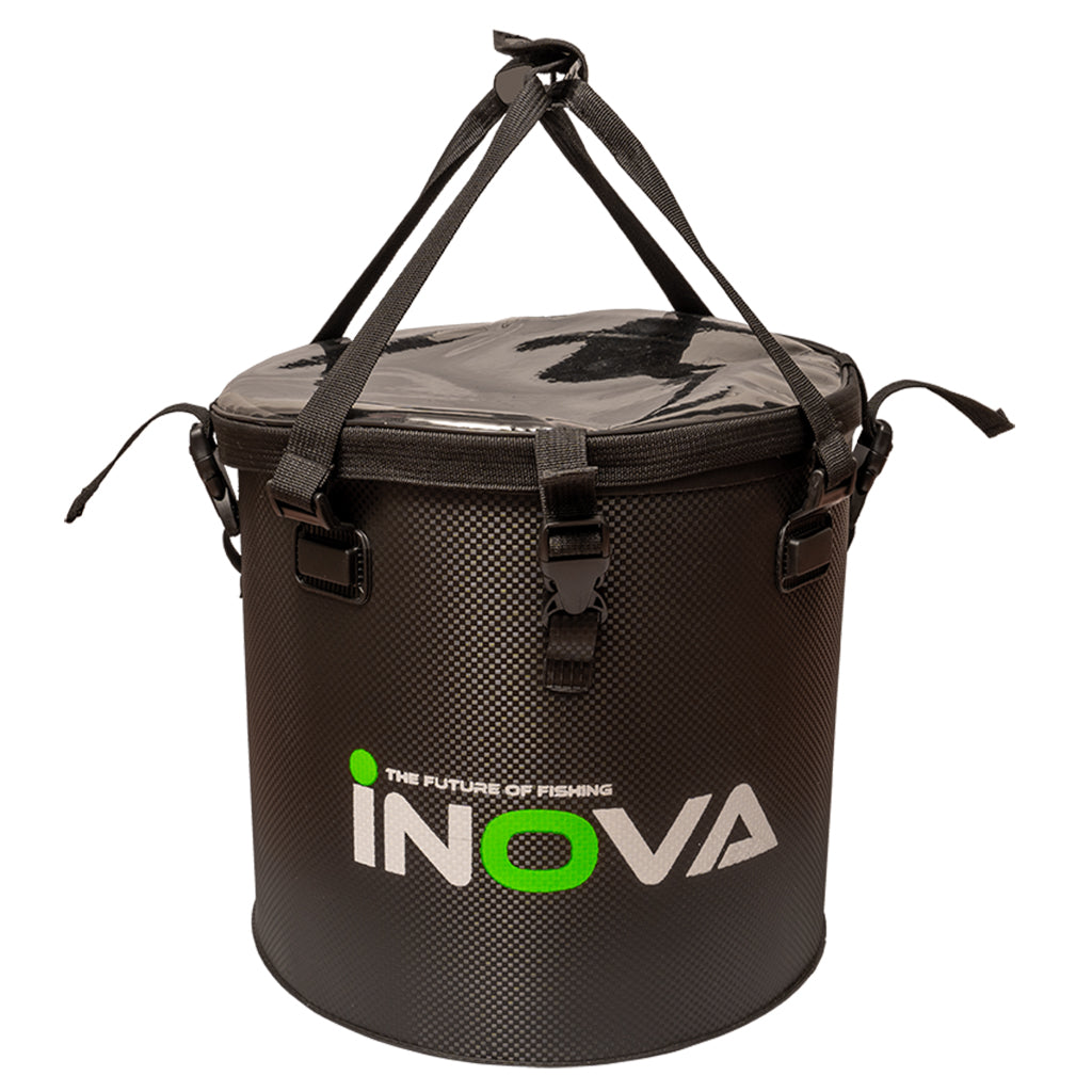 The Inova Lug-It Folding Bucket, a foldable bucket that is an easy-to-bring-and-use tool for surfcasters and other land based fisherman. Due to the PVC tarpaulin material with PVC coating, the bucket is perfectly waterproof but also flexible and easy to store in e.g. your backpack.