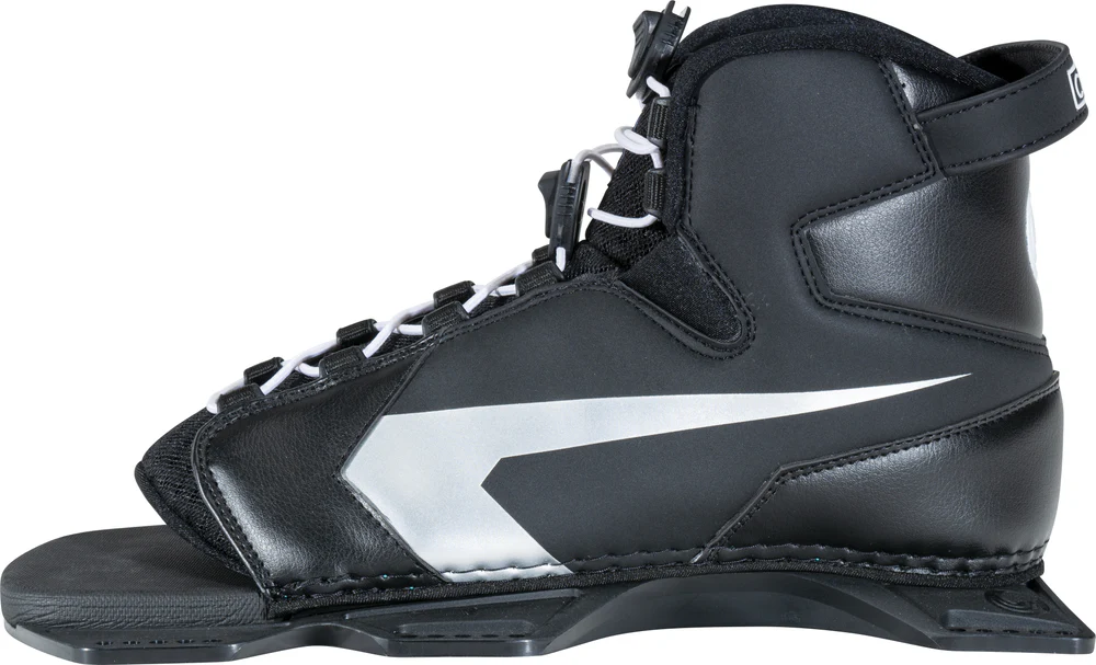 By far our most user-friendly design the Shadow binding uses a stretch panel in the toe which can expand or compress to ensure proper fit for a wide variety of sizes. The Lycra lined toe and heel wrap are molded to fit snug without causing pressure points. Our soft EVA footbed is set in a super-lite plate to keep you comfortable behind the boat.